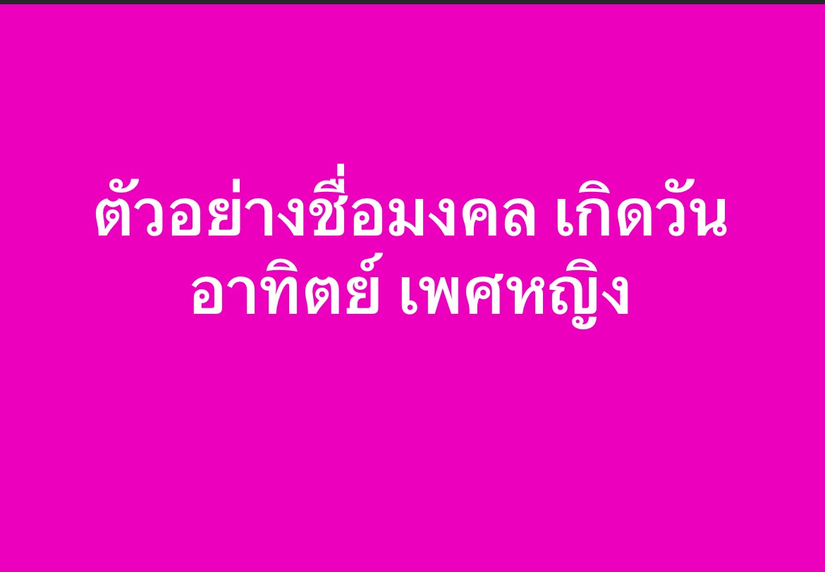 “ชื่อมงคลสำหรับเพศหญิงที่เกิดวันอาทิตย์”